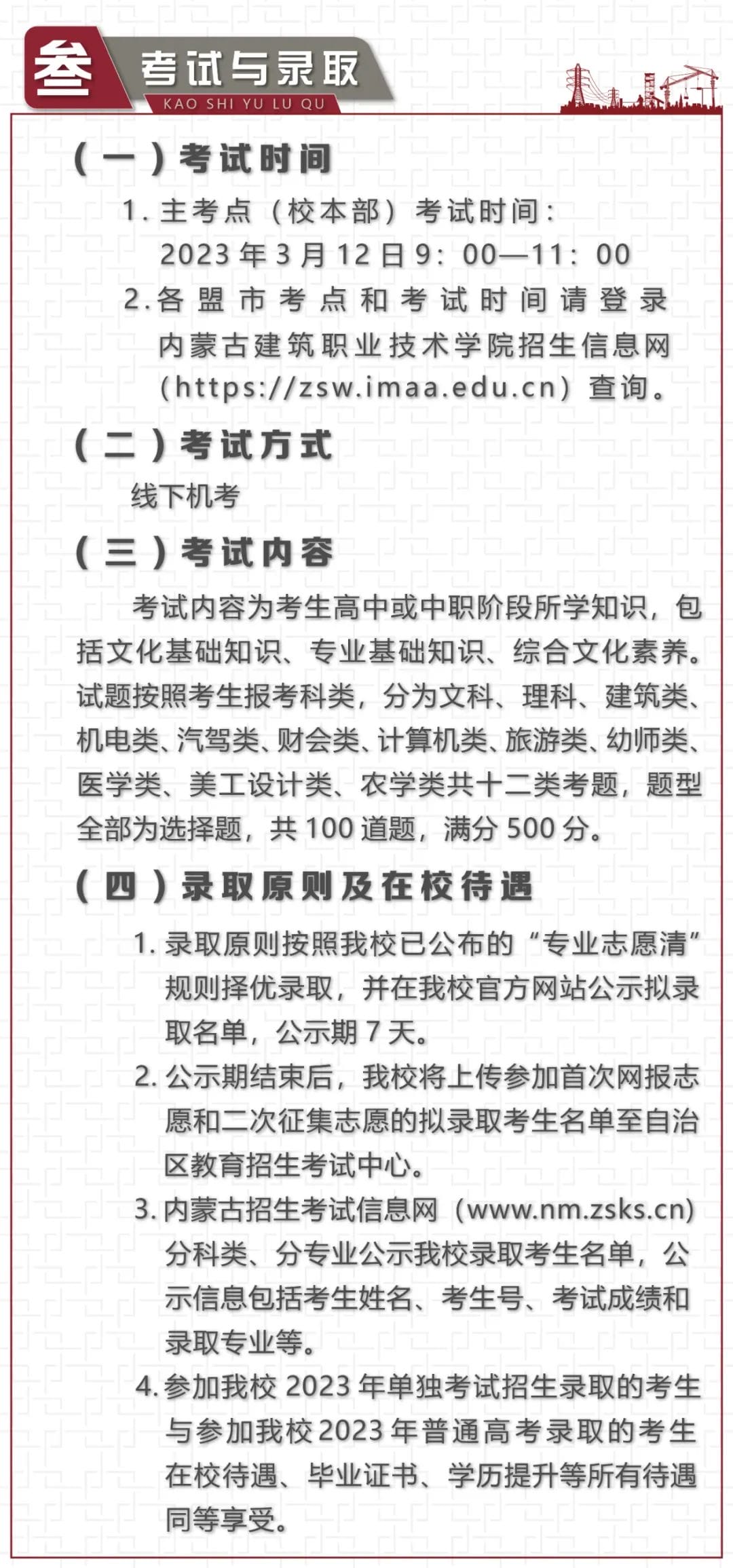 更多详情:内蒙古建筑职业技术学院2023年单独考试招生简章